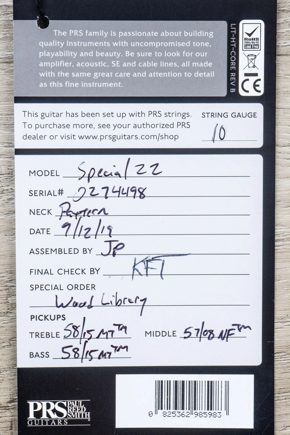 As one of PRS’s Signature Dealers, we are able to have the distinct privilege of going to Maryland a few times a year to hand-select woods and pick out appointments for some unique Wood Library runs. For this run of Special 22 guitars, we took some specs directly from the Private Stock Super Eagle II while still coming in at about half of the price.