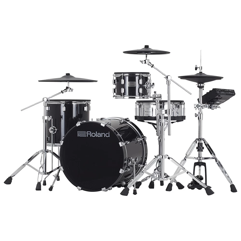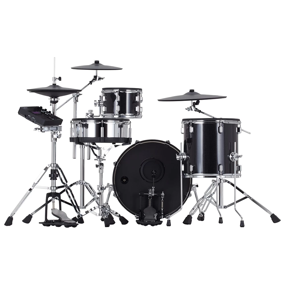 - Four-piece V-Drums Acoustic Design kit with full-size wood shells and upgraded double-braced chrome stands