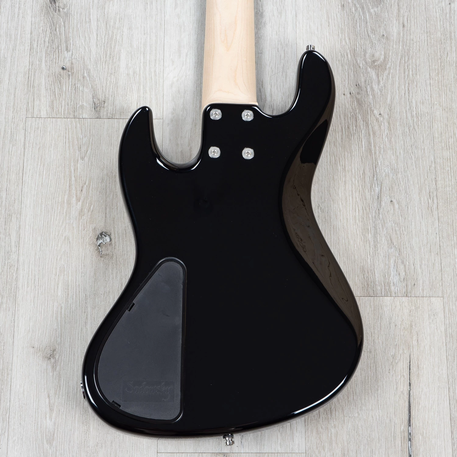 Roger Sadowsky’s goal was always to further improve an already very successful bass design by making a number of detailed improvements. Along with the electronics, which he developed by himself, he succeeded to raise the well-known J/J bass sound to a new level, so today you can speak of a typical Sadowsky tone: Never harsh or shrill sounding, with strong, powerful but never muddy bass, with present, but not too aggressive mids, and a sweet and airy treble range. All features of this modern bass sound can also be found in the 21-Fret Vintage J/J basses of the MetroLine series made exclusively in Germany. All basses are lightweighted with approximately 8.4 pounds. A good choice for bass players who are looking for a lightweight solution for the stage in addition to a modern bass sound. Special features of the Vintage J/J basses of this series are the active electronics with true bypass, Vintage Tone Control, treble and bass boost, ultralight Hipshot tuners and the special Sadowsky bridge for quick string release. This 5-string bass in sleek undersized J-Style shaped swamp ash body comes in Solid Black High Polish finish.