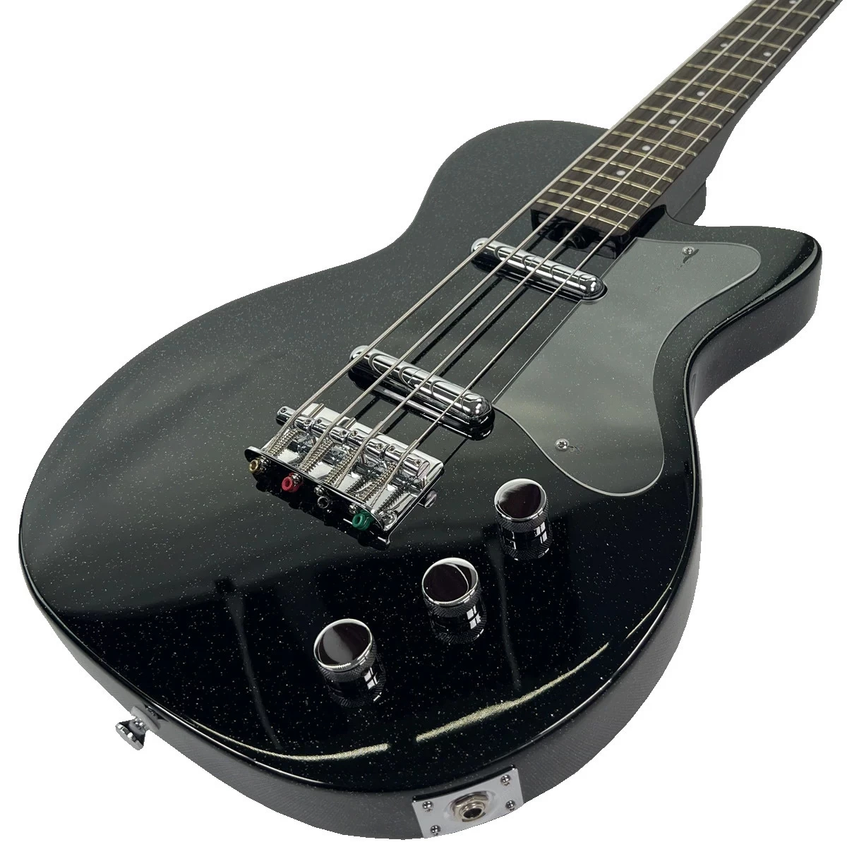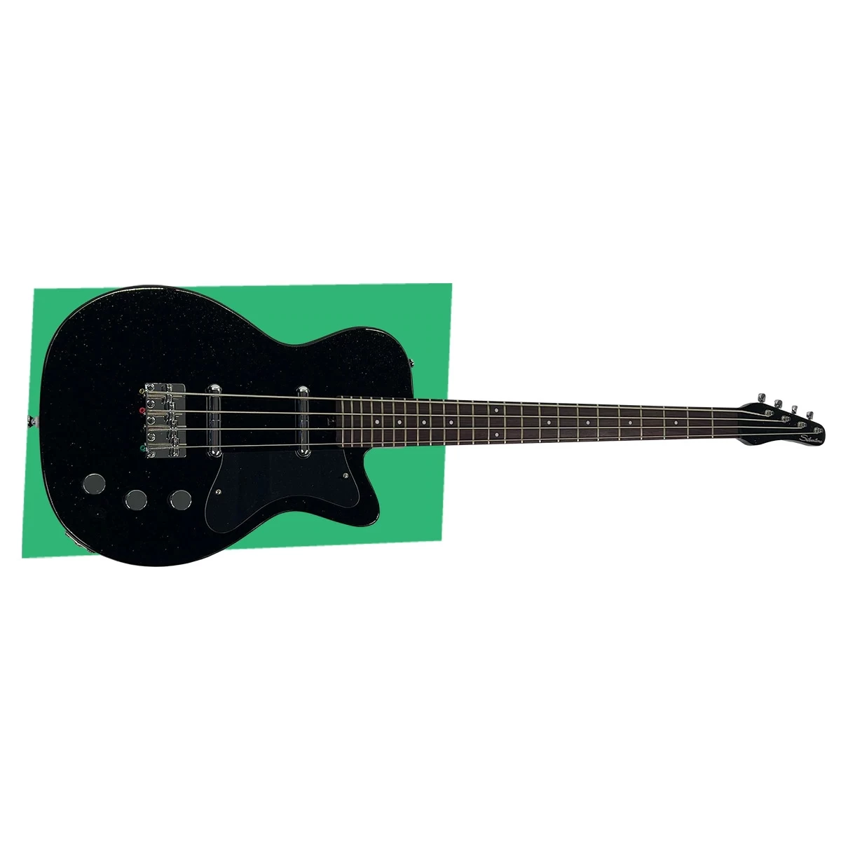 The original Silvertone 1444 bass was the very first 4-string electric bass offered by Sears back in 1959. It featured a “U” style body with a rounded neck cutaway and aluminum cavity cover. This model 1444 held down the bottom end for Silvertone for 7 strong years, ending production in 1966.The new Silvertone 1444 reissue bass is a modified version of the original Silvertone 1444. It has been redesigned for the modern bassist and can easily produce vintage and modern tones. The Reissue 1444 features a 24 fret 30” short scale rock maple neck with rosewood fingerboard and a solid mahogany body. We modified the bass by adding a bridge position lipstick pickup for added versatility, and a fully adjustable bridge.The electronics are two Silvertone lipstick pickups with Volume, Volume, and Tone controls. Unlike the original 1444, the new reissue also features a fully adjustable dual expanding truss rod.