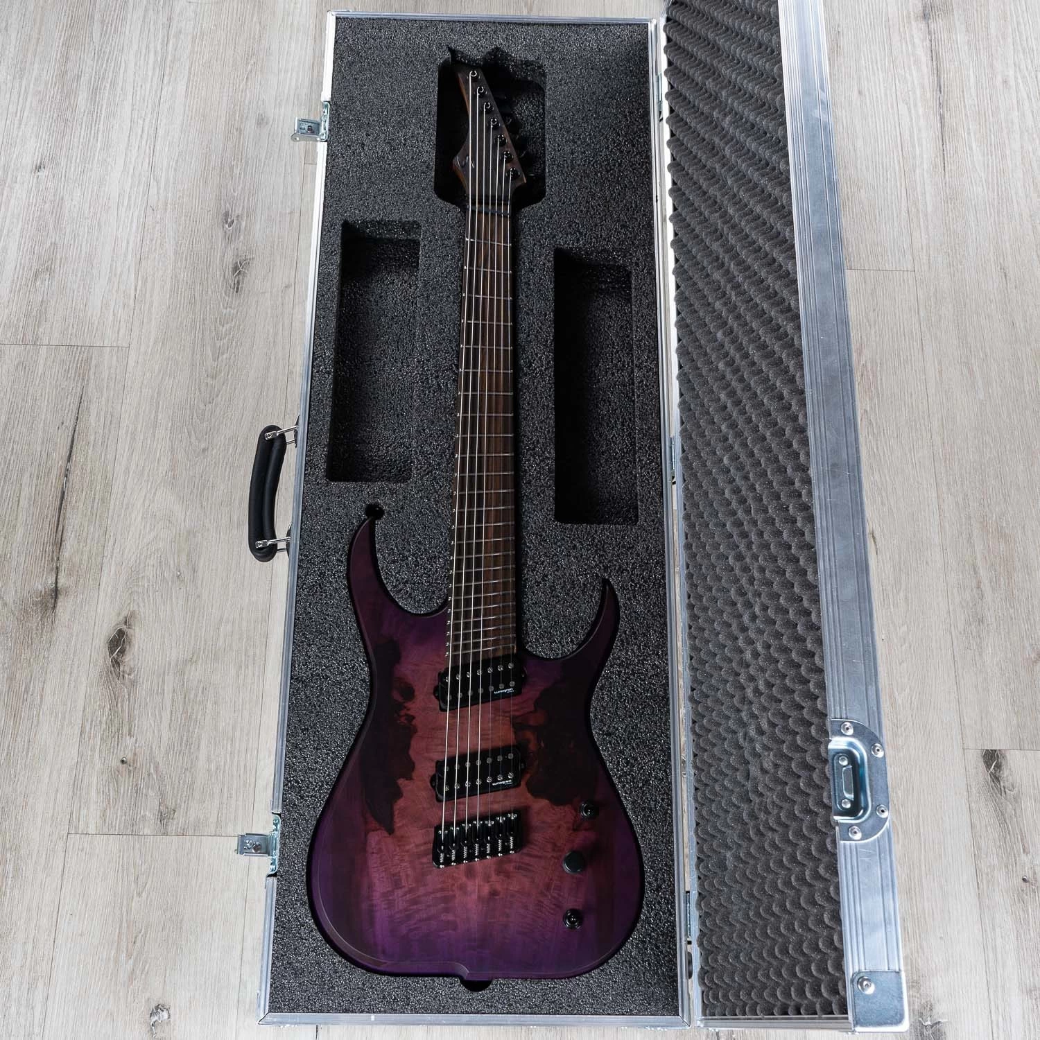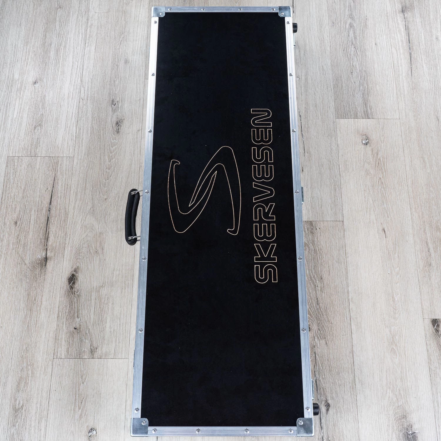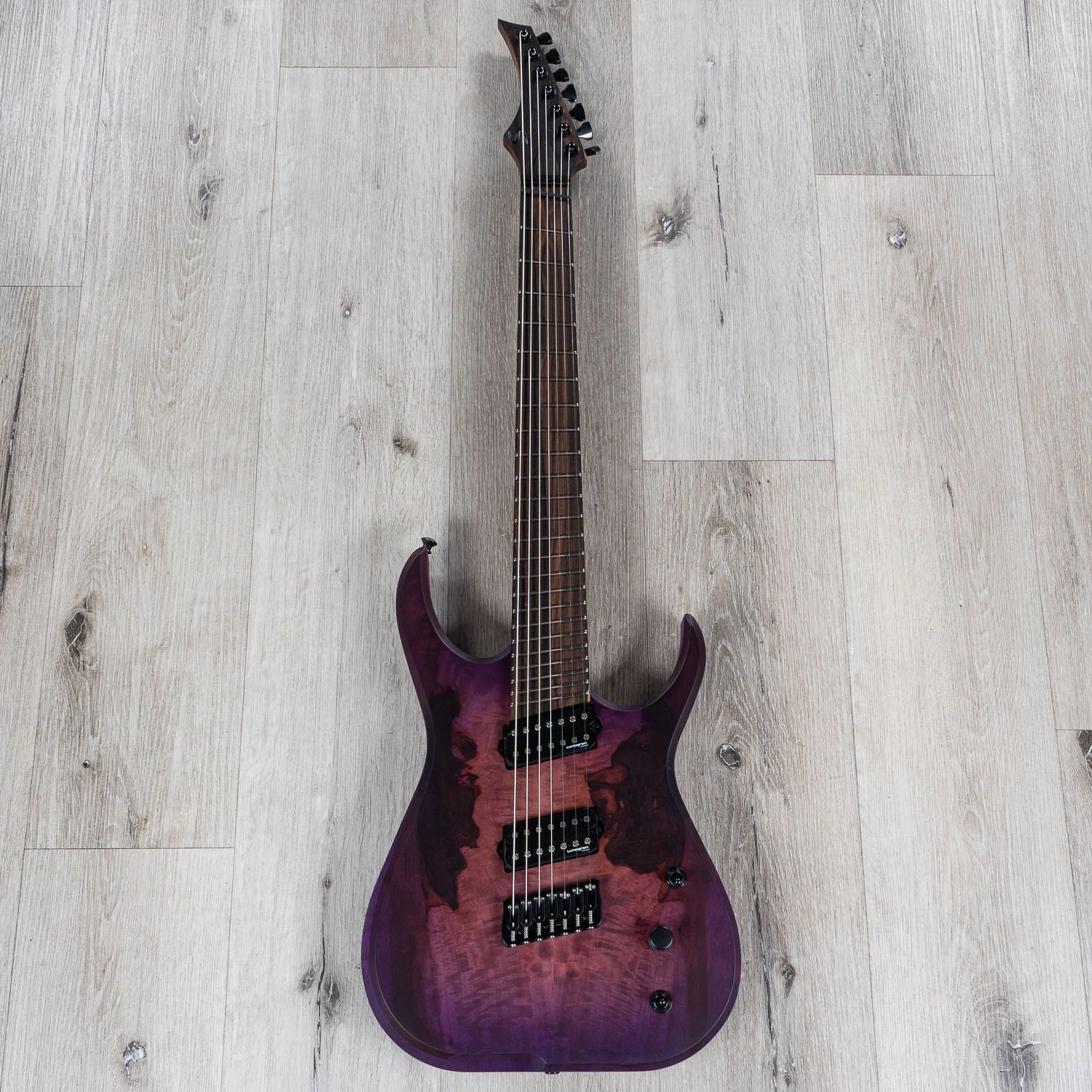 Music Store Live is very proud to offer up this Skervesen 7-string Raptor guitar in a gorgeous purple burst finish over a figured pear wood top. This one also has Skervesen’s World Domination Mod upgrade which allows for beautiful chimey and almost acoustic-like tones to be had along with the powerful humbucking and vocal-like split-coil sounds that are a bit more standard. The Lundgren pickups are also geared towards heavier styles of playing and sound absolutely fantastic with high-gain or heavy distortion.