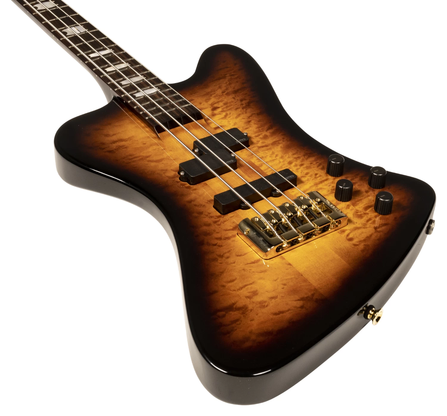 - Controls: Master Volume, Pickup Balance, Bass, Treble