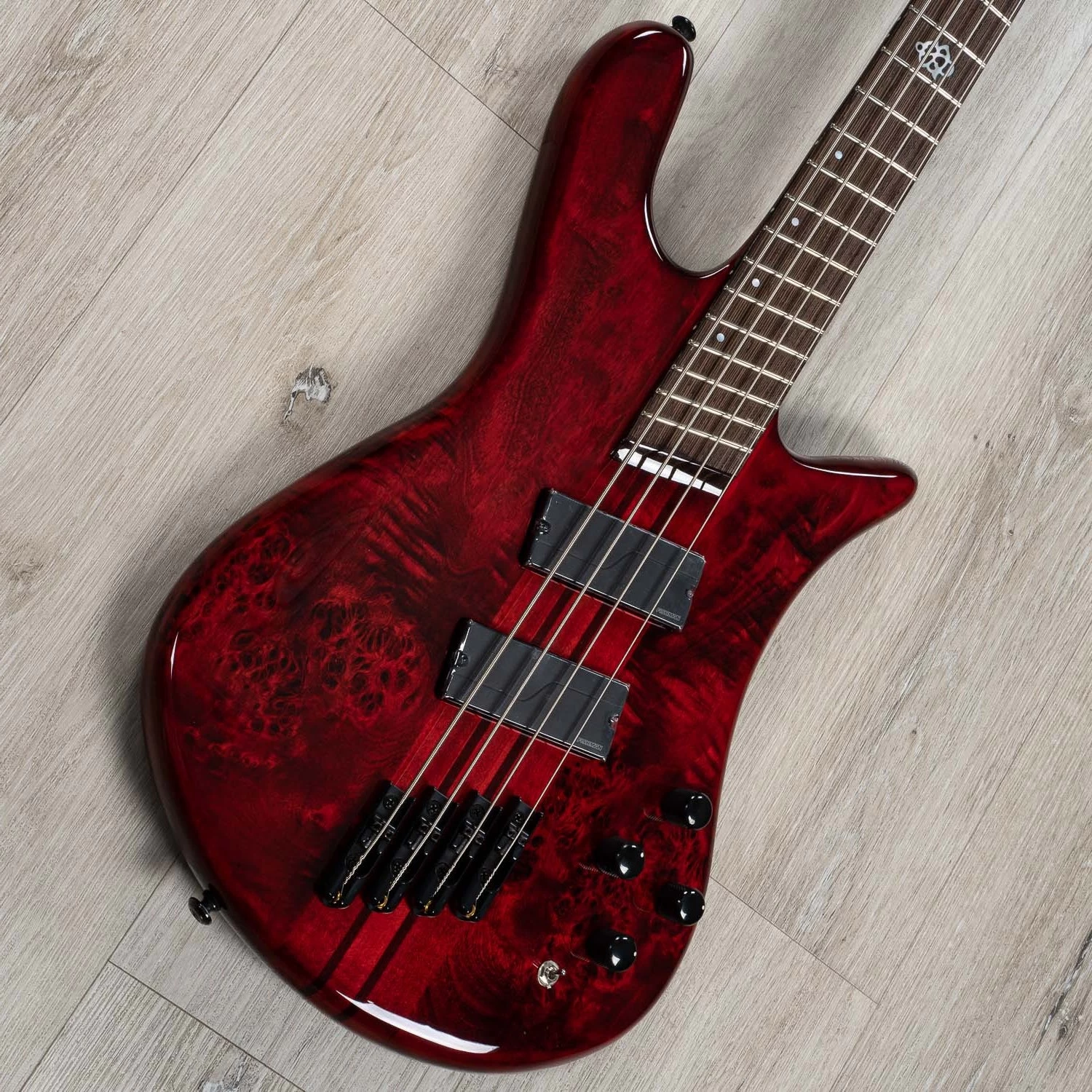 The NS Dimension Series reimagines Spector’s iconic design with multi-scale construction and offers players a new level of playability and tonality. In addition to the multi-scale, neck-thru construction, NS Dimension models also feature a variety of premium tonewoods and cutting-edge Fishman Fluence electronics. The fully curved body is carved from lightweight Swamp Ash and features a highly figured Poplar Burl top. The 5-piece neck is constructed from Maple and Wenge for enhanced stability and eye-catching looks. The 24 fret Wenge fingerboard also features illuminating side dots, allowing players to expertly navigate the fingerboard. New for 2022, the highly sought-after Spector NS Dimension basses are available in two all-new colors, Black & Blue and Inferno Red, each featuring a high gloss finish. Taking inspiration from Spector’s USA Series, the new color options in the NS Dimension Series were carefully chosen to highlight the grain pattern of the highly figured woods, resulting in a striking look that’s always one-of-a-kind.