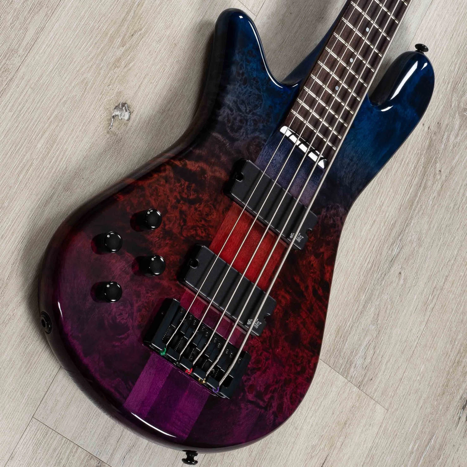 Spector’s NS Ethos range celebrates the brand’s iconic legacy while simultaneously incorporating fresh features that matter to the modern player. The iconic curved body is carved from solid Maple and is adorned with a highly figured Poplar Burl top. The 3-piece Maple neck features a 24 fret Rosewood fingerboard, adorned with a custom Spector logo inlay on the 12th fret. When it comes to electronics, the NS Ethos employs Aguilar’s premium pickups & OBP-2 active pre-amp for a wide range of usable and musical tones. NS Ethos basses are available in two distinct finishes including Interstellar and Super Faded Back. These eye-catching, high gloss finishes are inspired by our USA Series instruments and lend an extra level of sophistication to these instruments.