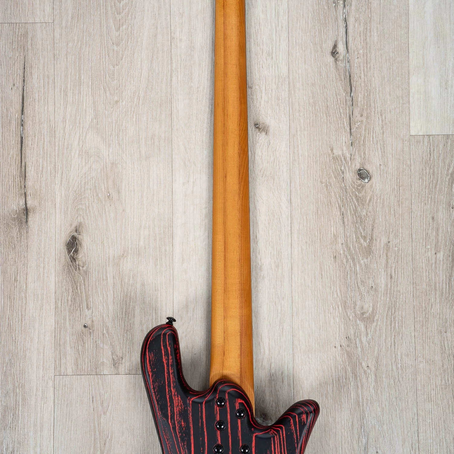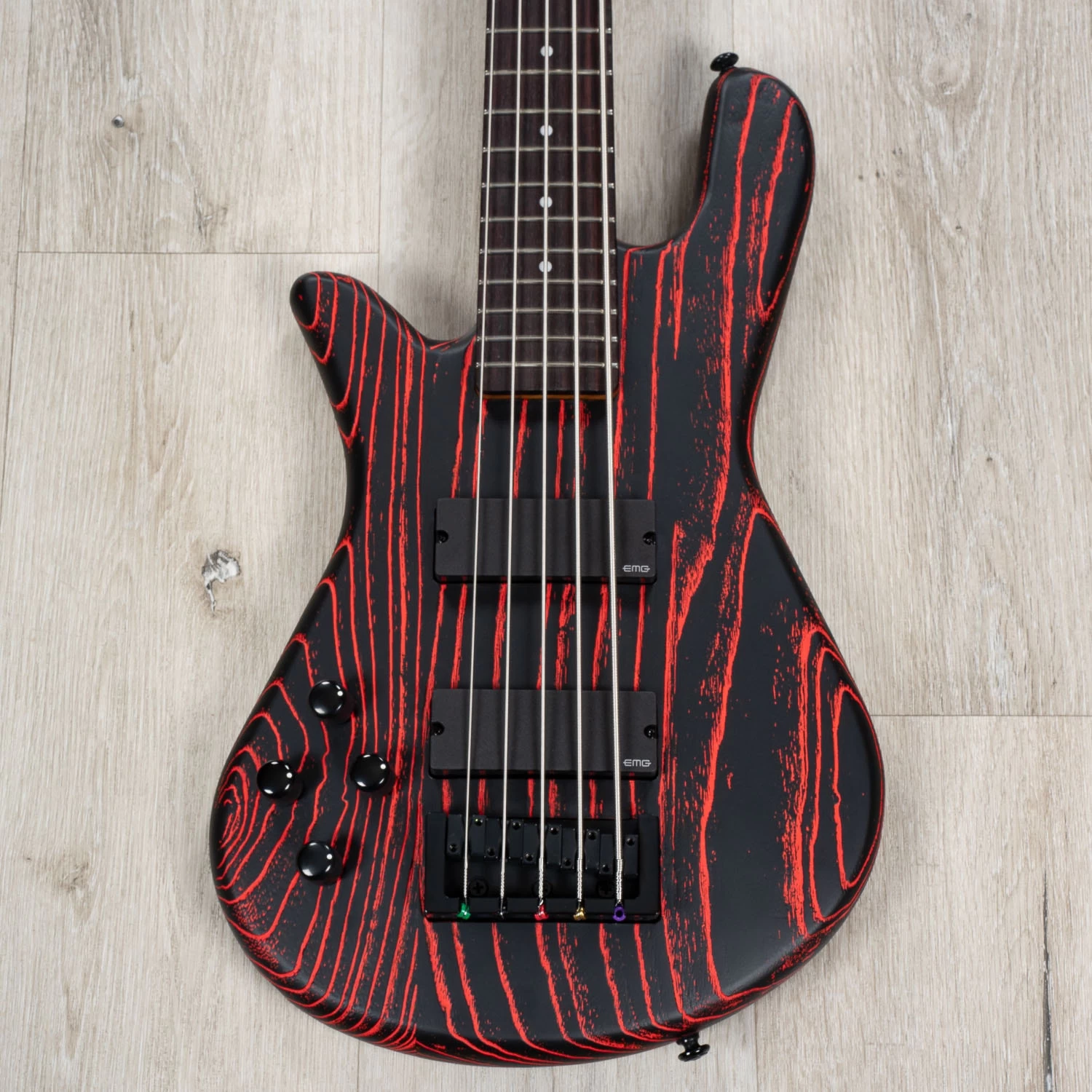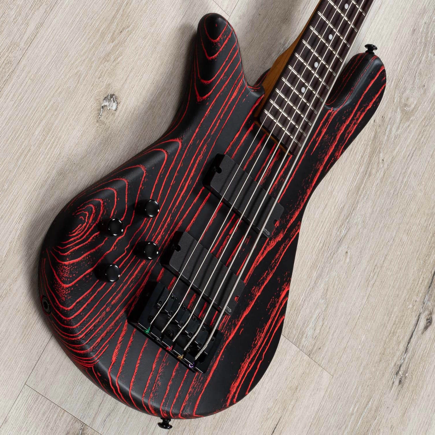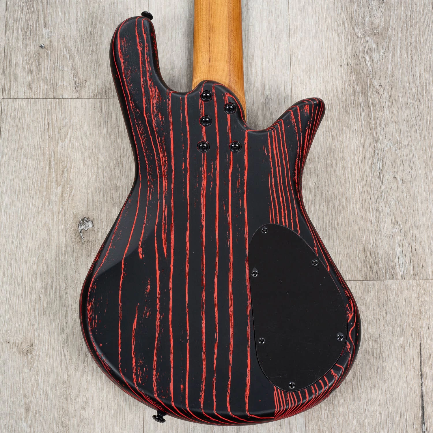 The NS Pulse represents the core of Spector’s iconic design. The three-dimensionally carved body is a trademark of the Spector brand and provides a uniquely comfortable playing experience for all bassists. This NS Pulse model features a solid Swamp Ash body paired with a three-piece Roasted Maple bolt-on neck, complete with a Macassar Ebony fingerboard. The roasting process results in a neck that provides enhanced stability & resonance, while the Macassar Ebony fingerboard ensures clear note definition and projection. This model is also equipped with EMG active pickups and Spector’s proprietary TonePump Jr. active pre-amp. This combination yields a range of impressive & aggressive noise-free tones. Perhaps the most striking feature of this bass is the sandblasted finish which highlights the unique grain pattern of each instrument. When paired with our Cinder Red or Charcoal Grey stain, the result is nothing short of stunning.