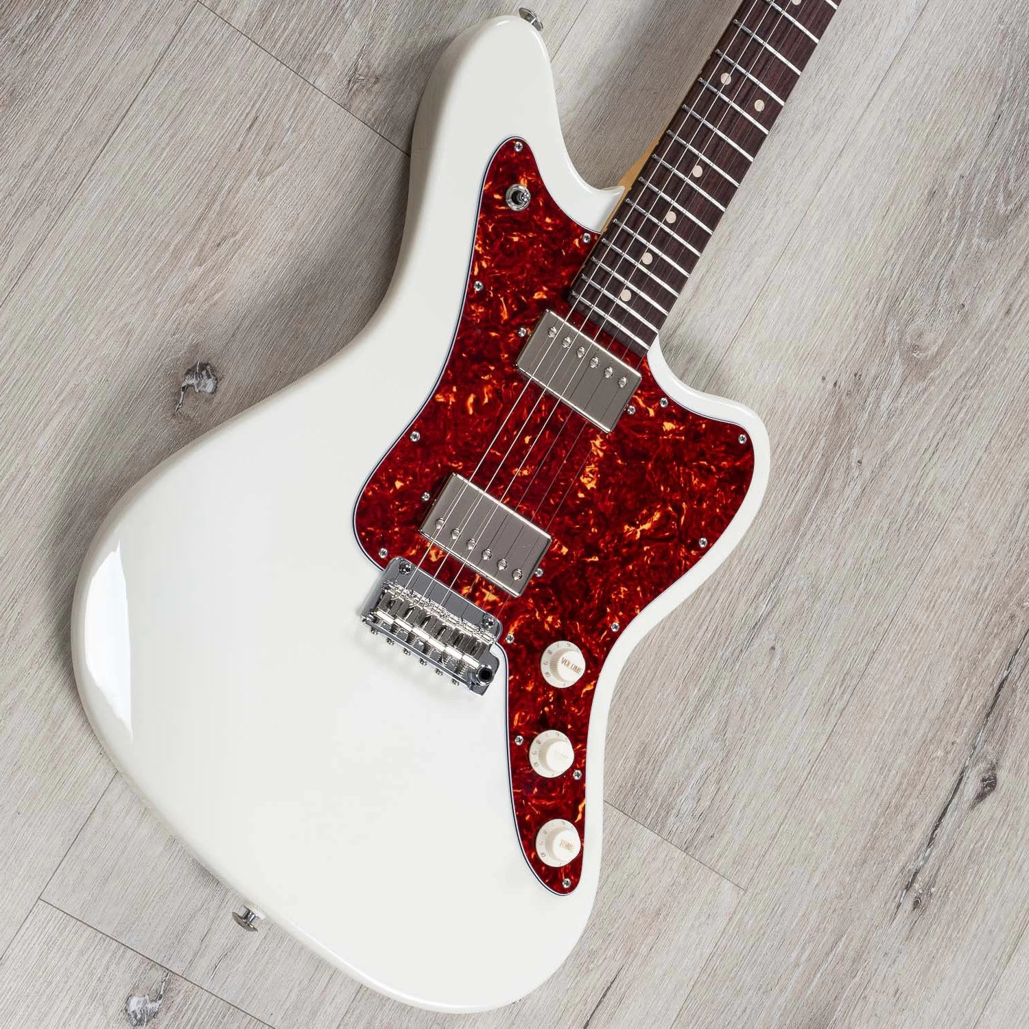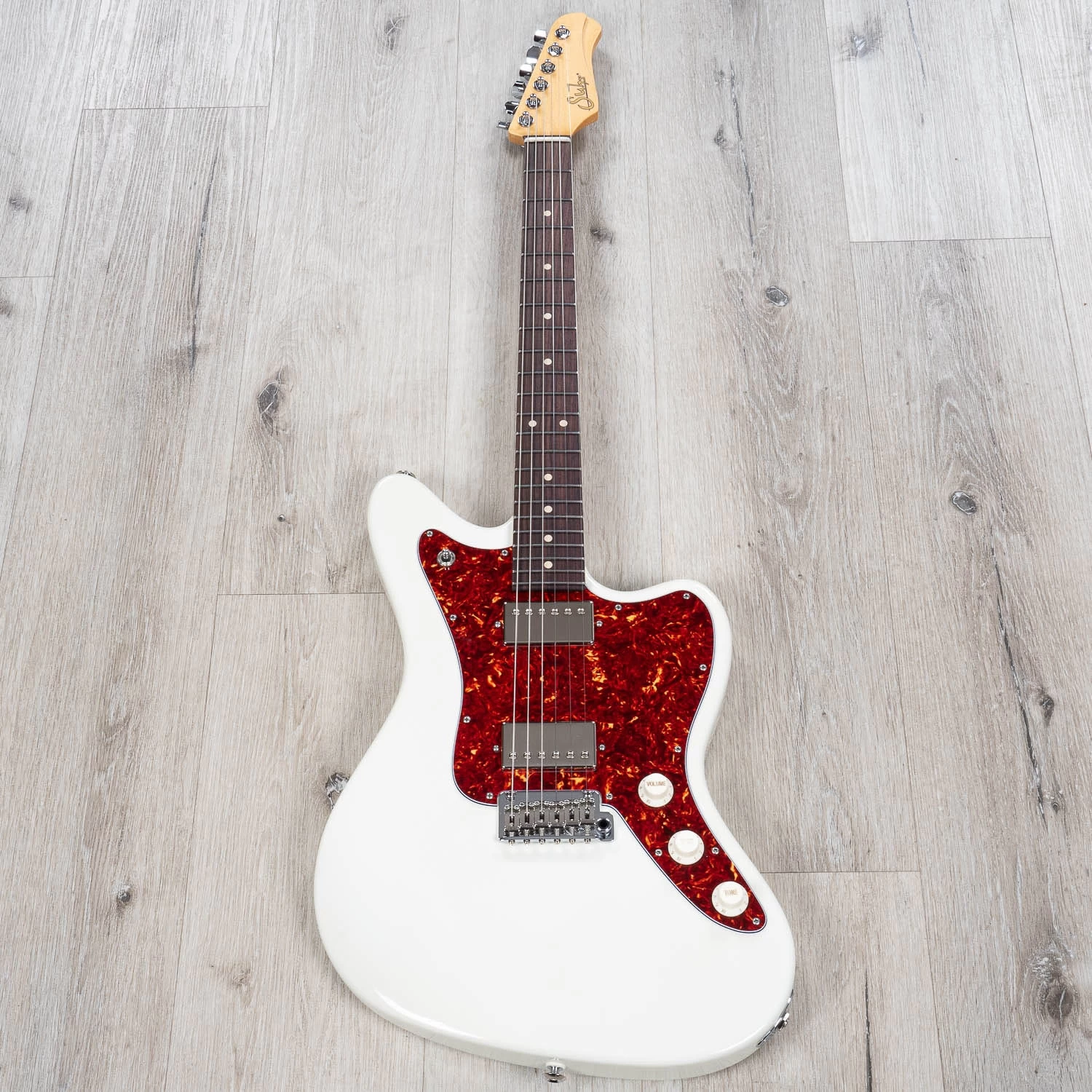 Here’s a Suhr that’s too cool for school. Check out this beautiful Classic JM equipped with a pair of SSV humbucking pickups! This one’s in a sweet Olympic White with a classy tortoiseshell pickguard.