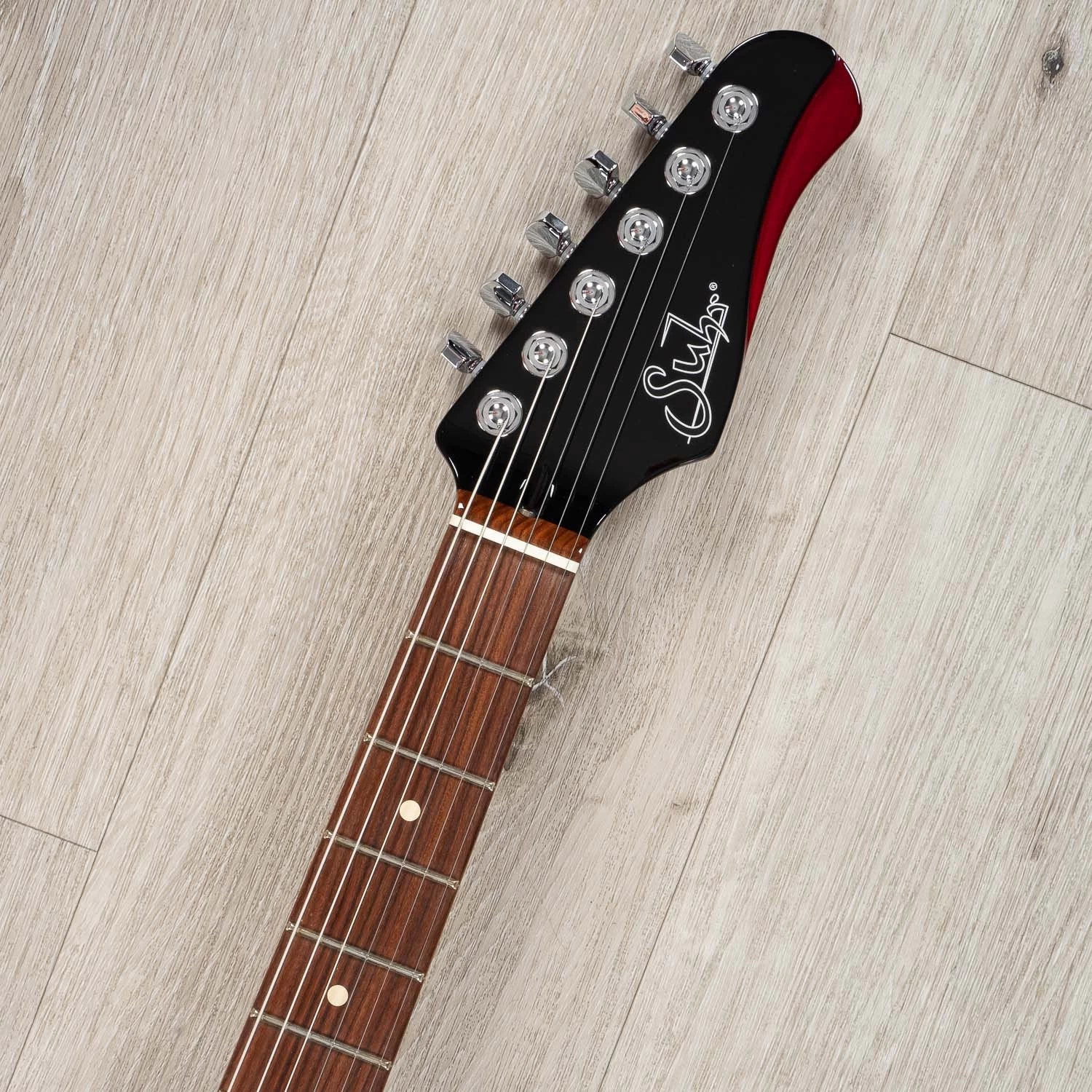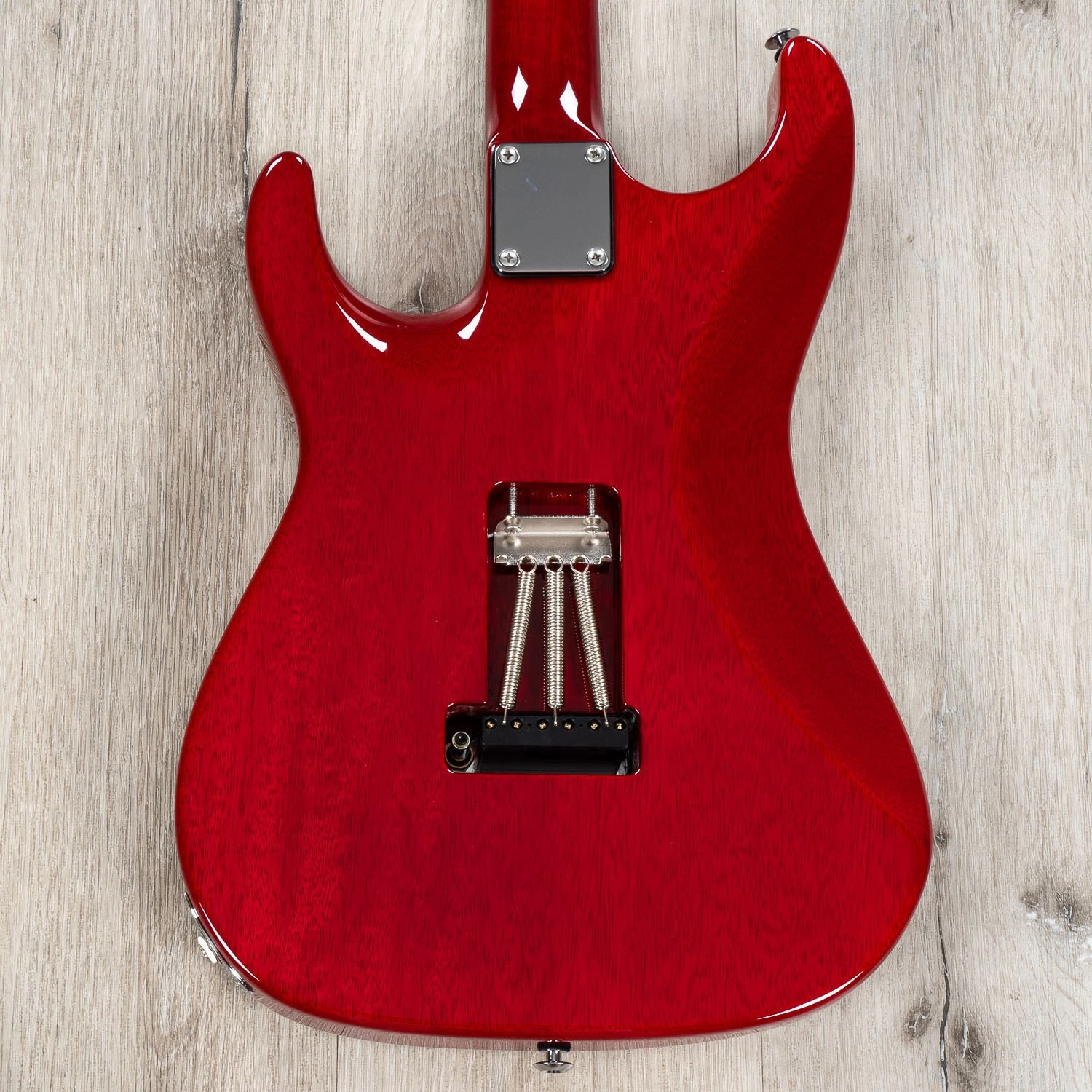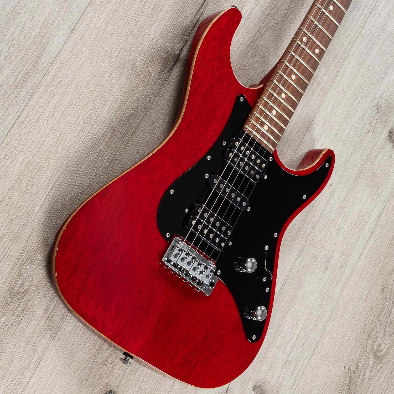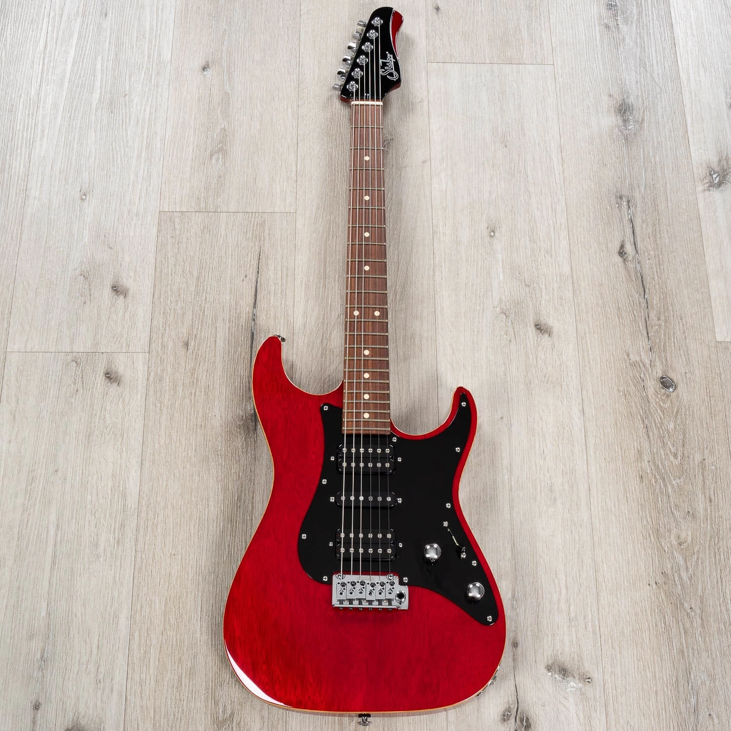 - Headstock: Hybrid – Black Headstock, Trans Red Step