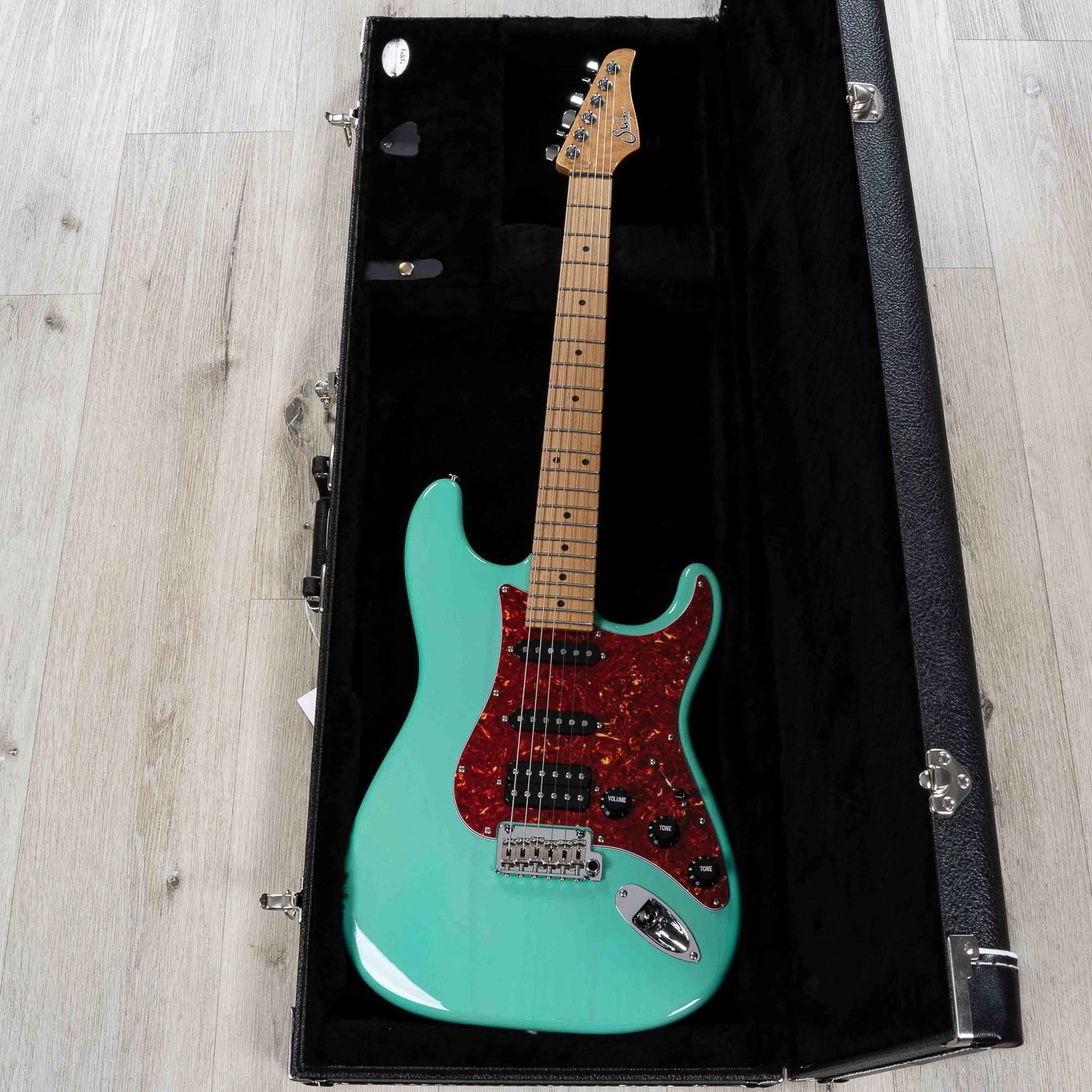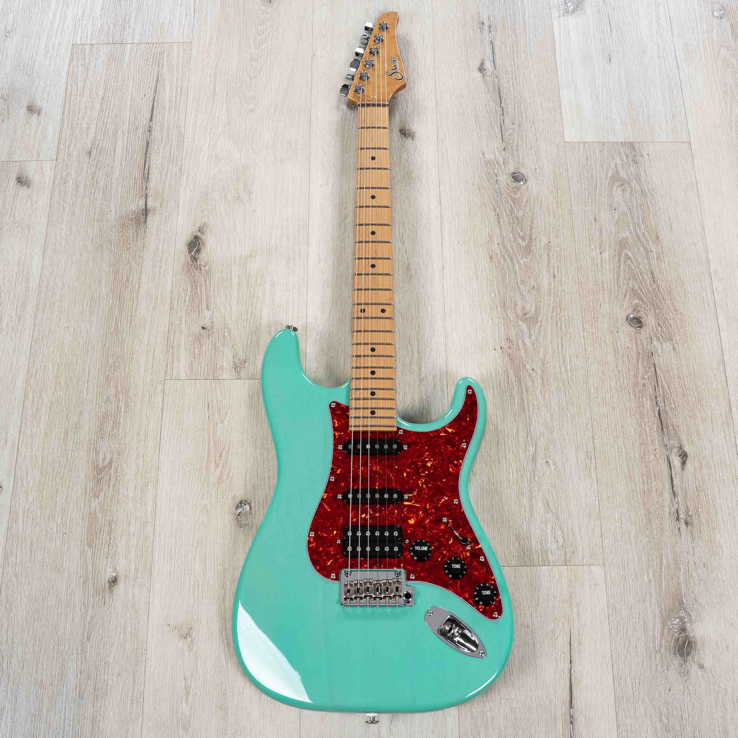 After the incredible feedback regarding our Classic T Paulownia Limited Edition, we would now like to introduce the Suhr Classic S Paulownia Limited Edition. A beautiful Paulownia Classic S body, available in Trans Sonic Blue, Trans 3 Tone Burst, Trans Seafoam Green, and Trans White, all with tortoise shell pickguards. Paired with a 3A Roasted Birdseye Maple ’60’s C vintage standard’ neck and fingerboard with heavy stainless-steel frets. A Suhr V63 pickup in the neck and middle positions, and a Suhr DSV humbucker in the bridge with a 5-way blade pickup selector, and a Gotoh 510 with bent saddles and steel block.