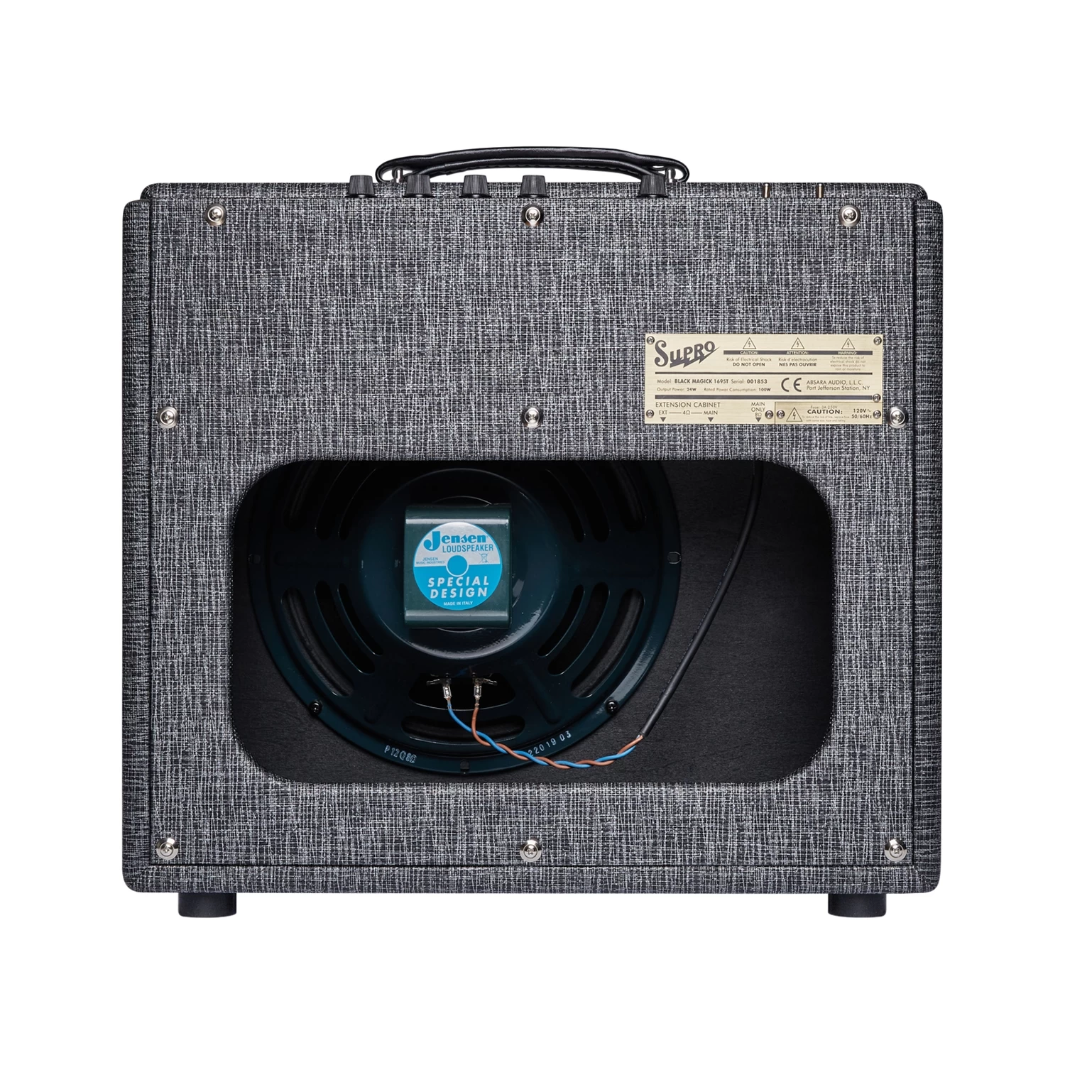 The Black Magick combo is a faithful recreation of one of rock & roll’s holy grail amplifiers. Its circuitry, build and cosmetics are modeled after Jimmy Page’s beloved 1959 Supro combo, famous for offering most of the tones heard on Led Zeppelin I. A 25-watt, Class A, all-tube amplifier, the Black Magick offers more gain than any other Supro amp. Its 6973 tubes offer the instantly recognizable midrange grind and phenomenal touch dynamics that define the Supro sound, all propelled by a Jensen P12Q, offering warm, balanced tone. Two independent preamp channels can be linked together using the “1 + 2” input jack to obtain fat tone, while utilizing only Input 2 will yield a more agile sound. Our signature power tube tremolo adds footswitchable depth and dimension to this Rock & Roll time machine. Also available in head format with matching extension cabinet.