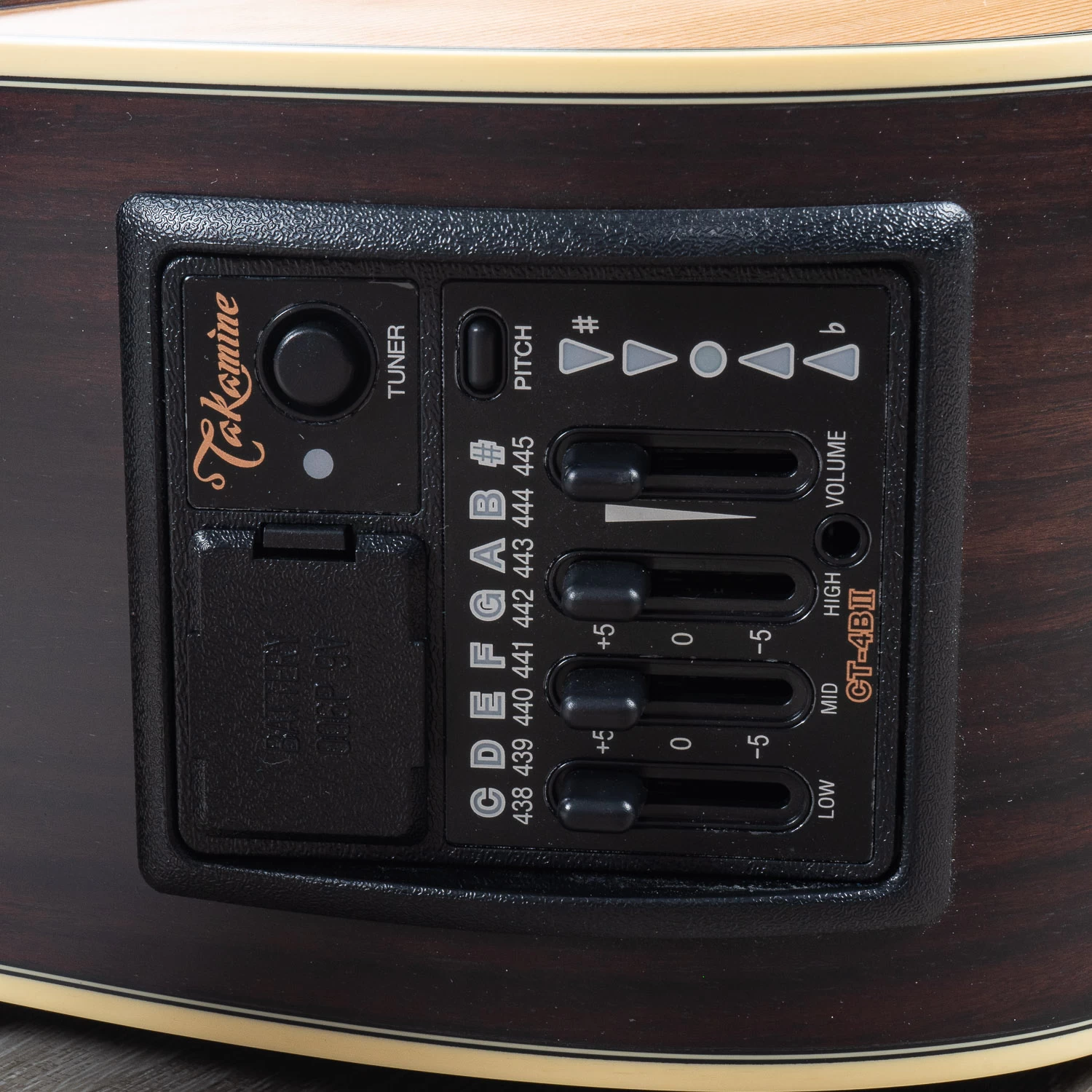 The GB7C Garth Brooks signature model was designed as a collaboration between Takamine R&D and country legend Garth Brooks. This model matches a solid cedar top, finished in a silky smooth natural satin finish, to a solid rosewood back and features a unique soundhole that mirrors the shape of the guitar. Sonically, the guitar performs well in soft fingerstyle passages and aggressive strumming. The mahogany neck is joined to the body with a traditional, ultra strong dovetail joint. Includes Takamine’s CT4B II preamp system paired with the unique Palathetic™ under-saddle pickup for peerless amplified response. The highly acclaimed CT4B II preamp system with three-band EQ, volume control and built-in tuner.