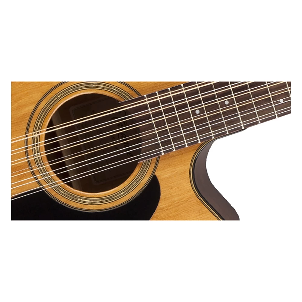 Ready for any performance situation, the GD30CE-12 features a solid spruce top and mahogany back and sides that produce a rich, resonant sound. The slim mahogany neck and 12”-radius rosewood fingerboard provide great feel and playability, while the onboard Takamine TP-4TD preamp system gives you a built-in tuner and three-band EQ and gain controls for excellent amplified performance and versatility.