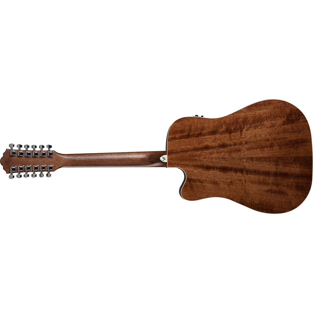 The HD10SCE12 is a dreadnought cutaway 12 string acoustic guitar. It feature a solid spruce top for superior tone that improves with age, mahogany back, sides and neck, a rosewood fingerboard and bridge, diecast tuners for quick, easy and accurate tuning, a Washburn tortoise pickguard and a custom rosette. The cutaway makes it easy to reach the uppermost frets. With its built in premium Fishman 301T Tuner/Preamp, you’ll never have to carry a tuner with you and it’s plug-in ready.